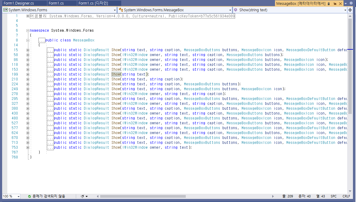 우리가 계속 사용하던 MessageBox.Show 를 통해서 좀더 확인해보자.