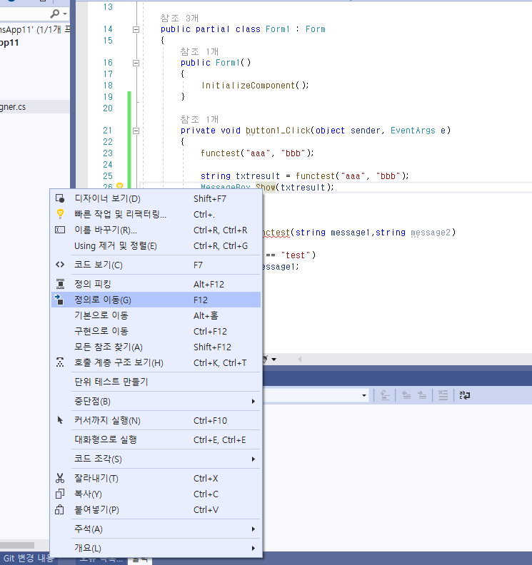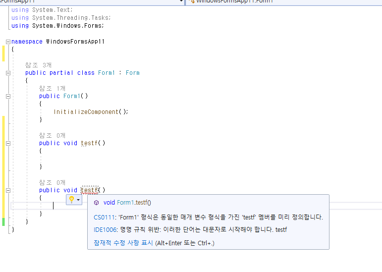결국 MessageBox.Show 를 사용하기위해서는 using System.Window.Forms; 을 해줘야 사용할 수 있는데 다시 form1 코드로 돌아가서 위쪽부분을 보면 해당 using 코드가 있다는 것을 알 수 있다.